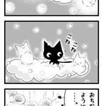 空の上のピリ280回目 無茶苦茶眠い。毎朝ババ様のカウントで一日が始まる。彼女の朝は早いのだー🥺 #毎ピリ #空の上のピリ #猫好きさんと繋がりたい #絵描きさんと繋がりたい #創作クラスタさんと繋がりたい #黒猫党