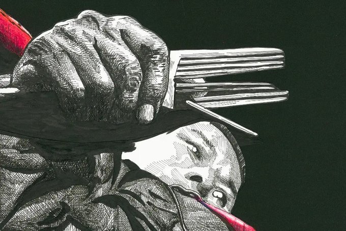 #必殺商売人 より新次さん (演:梅宮辰夫さん) この頃の必殺の構図は楽しい(笑) ただ梅宮さんが恰幅すぎてたので… 手と武器(櫛)を…大きめに(笑) 最後のfanart😅の1つ ペン画は黒画用紙に沈まない😎 #イラスト #必殺 #ペン画 #黒画用紙 #イラスト好きな人と繋がりたい #絵描きさんと繋がりたい