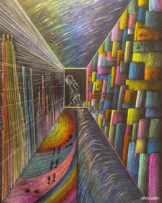 title: Flowing Time/流れゆく時間 #メタリック #アーティスト #アートワーク #絵 #絵画 #アート好きな人と繋がりたい #絵描きさんと繋がりたい #pencilart #イラスト好きな人と繋がりたい #art #colorful #黒画用紙 instagr.am/p/CnUZDeIPS3S/