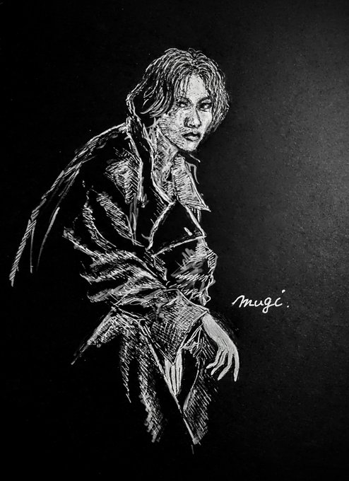 黒画用紙に白はほんとにムズい💦いつも白い紙に影を描いていくのにその逆になるから頭が大混乱🤯感覚を取り戻すのに時間がかかって途中で投げ出しそうになったけどなんとか完成したー🙌 #BEFIRSTファンアート #マナト #MANATO #黒画用紙 #白色鉛筆 #色鉛筆画 twitter.com/tesoro_mio1/…