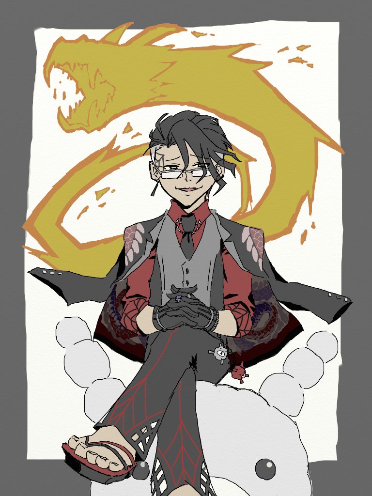 一周年おめでとうございます!コンパスをするキッカケになった素敵な男です⚡️シーズンもかんばりましょ〜! #黒髪スーツメガネで独占欲が強い天然人懐っこい変態であみぐるみ作りが趣味の極悪非道の若頭 #コンパスお絵描き