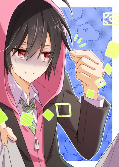 #絵描きさんフォロバ100 #絵描きさんと繋がりたい #オリジナルキャラクター #黒髪赤目 【願掛け企画】 フォロワーさん10,000人まで毎日投稿 ~絵描きさん以外も積極的にフォロバ。リムりません。~ 75日目『りくえもん黒染めver(創作、代理キャラ) 』