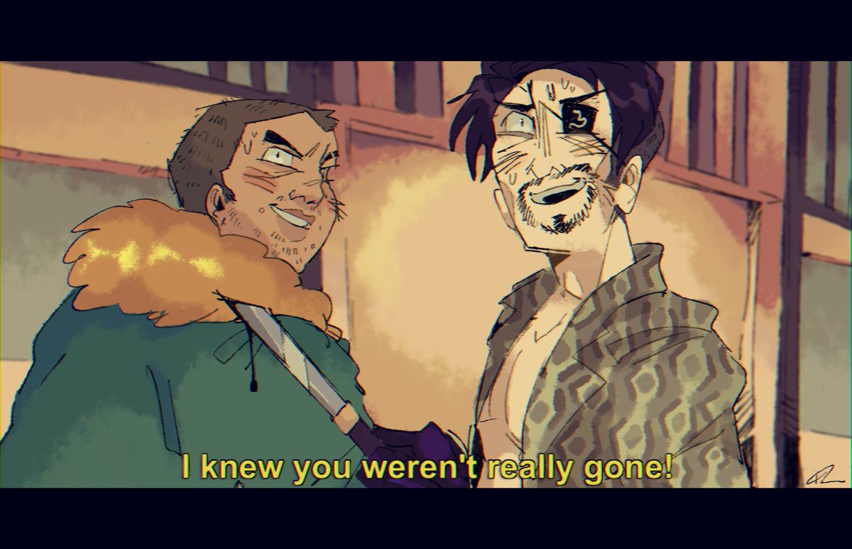 sorta screencap redraw from #YakuzaLikeADragon/#龍が如く7 because sae and maji's reactions in this scene make me so fucking emotional!!!! their BOY is BACK #majimagoro #saejimataiga #kiryukazuma