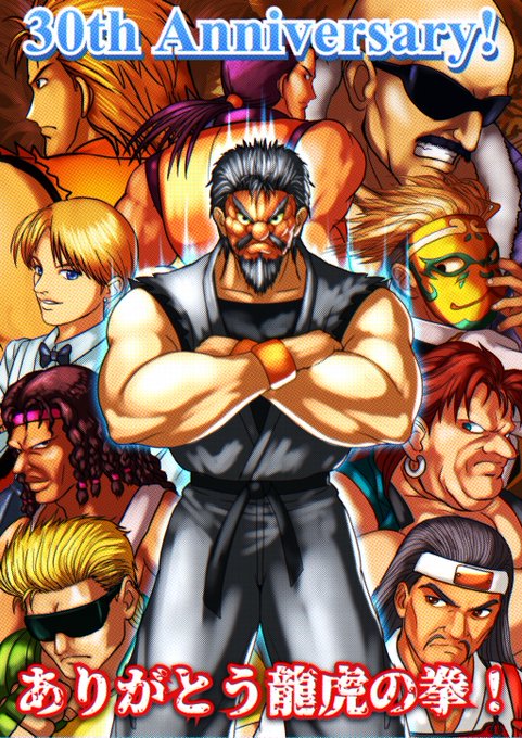 もちろんラスボスは謎の格闘家、Mr.カラテさんがセンター! 初代龍虎の拳ではその面が外される事はありませんでした😂 しかしながらその強さから後に様々なシリーズにも登場したのも記憶に新しい所✨ #龍虎の拳30周年 #格ゲーキャラ描こうぜ