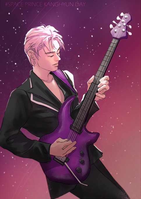 💜✨#COSMIC_CAT_KANGHYUN_DAY✨💜 #강현이의_궤도가_될게 To our lovely guitarist from space, thank your for sharing the sound of the universe with us and the sweet melodies from the stars through your guitar #원위 #onewe #강현 #kanghyun #onewefanart @official_ONEWE
