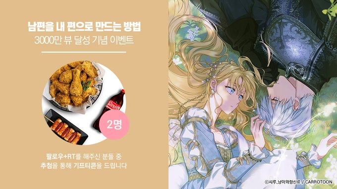 <남편을 내 편으로 만드는 방법> 3000만 뷰 달성 기념 𝐄𝐕𝐄𝐍𝐓 #남편내편 이벤트 게시글을 #RT 하고 본 #캐롯툰 계정을 #팔로우 해주신 분들 중 두 분께 #기프티콘 을 드립니다 🔸기간 : 4/12(수)~4/23(일) 🔸발표 : 4/24(월) 🔸링크 : (url.kr/y1376m) / (han.gl/XKOkN)