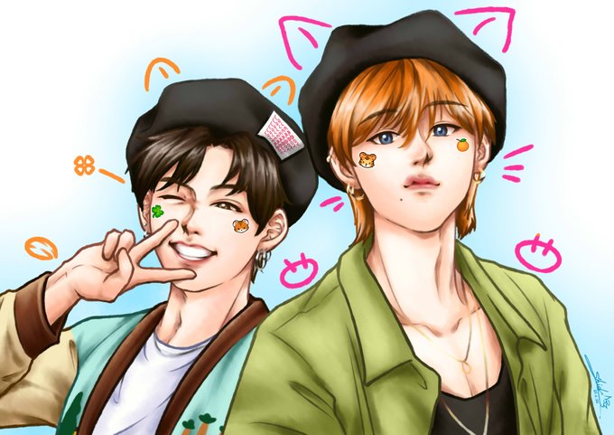 🌼TREASURE - CONCEPT POSTER <🦊&🍀> @treasuremembers I can’t control myself🥹🧡💚🥹 沒忍住,畫來自己開心一下 ---- #treasure #트레저 #treasurefanart #BangYeDam #방예담 #마시호 #MASHIHO
