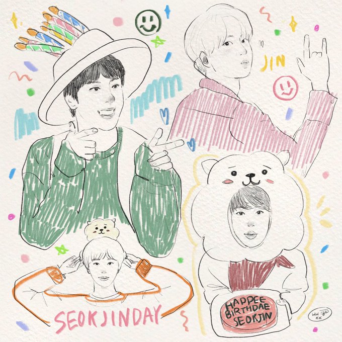 생일 축하합니다 JIN 🎂🐳💜🎀🦙🦸♂️ #HAPPYJINDAY #12월의_리본요정_석진아_생일축하해 #밤하늘_가장_빛나는_석진날 #석진이_생일엔_행복만해라_따따따 #BTS #btsfanart #JIN