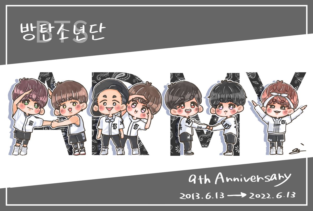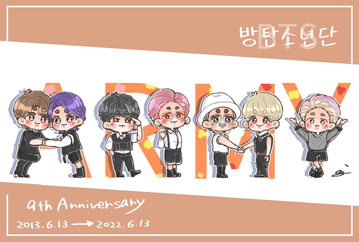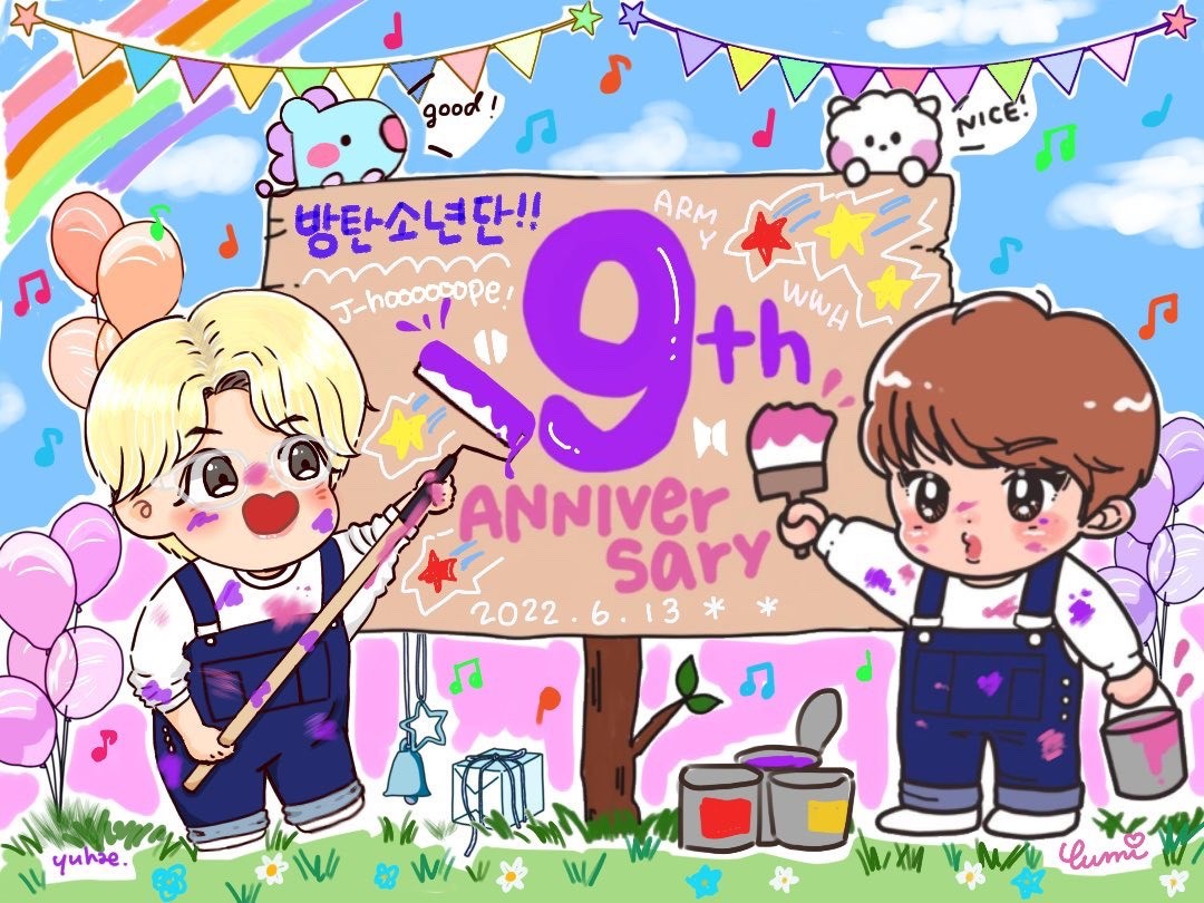 방탄소년단 9주년 축하드려요〜!!🎊 항상 많은 행복을 주셔서 감사합니다!! 7명이 언제까지나 행복하게 지낼 수 있기를 바랍니다...✨ #bts #btsfanart #방탄_9주년_축하해 #BTS9thAnniversary