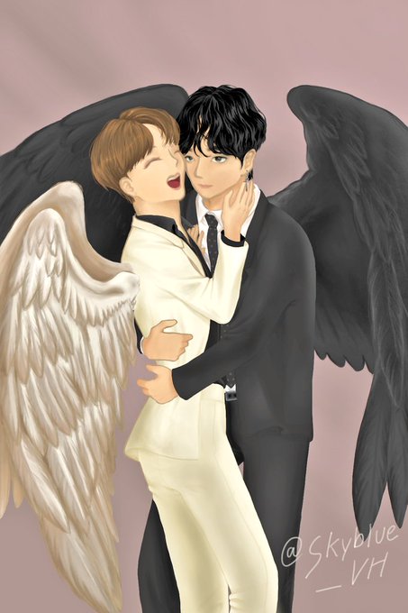 (RE) My old fanart from 2 years ago! Angel 🐿 and devil 🐯. #Vhope #Vope #Vhopefanart #뷔홉 #วีโฮป #ลัทธิโฮปเคะ