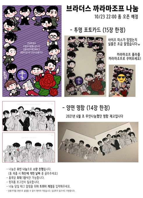 RT ♥ ) 10월 7일 00시부터 16일 밤 11시 59분까지 브깜 투명포토카드 / 폴꾸키링 통판 진행합니다! (이전에 나눔 진행했던 도안과 같은 도안입니다.) 수량 제한 없습니다. (기간 제한은 있습니다!) takemm.com/prod/view/14431 #브라더스까라마조프 #TheBrothersKaramazov #БратьяКарамазовы