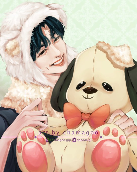 Byungie with hat and big puppy plushie! Woof woof ~ 🐶🐾🐥 Outfit inspo: 230107 fansign photo by #lovesome_BC. (Original tweet will be attached under the thread). #BYUNGCHAN #VICTON #VICTONFANART #최병찬 #빅톤 @VICTON1109 @NewWorld_VICTON