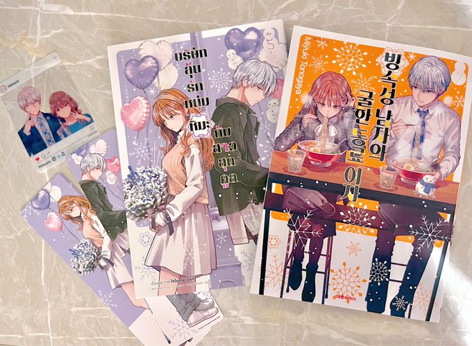 『氷属性男子とクールな同僚女子』韓国語版7巻と、タイ語特装版5巻をいただきました☃️ 書き文字も可愛い♡よろしくお願いいたします!❄️❄️ #빙속성남자와쿨한동료여자 #บริษัทลุ้นรักหนุ่มหิมะกับสาวสุดคูล