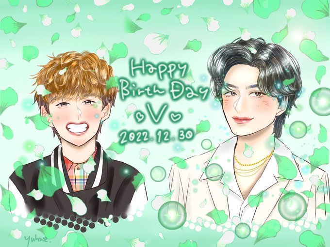 Happybirthday V〜!!💚💚 언제까지나 행복하길❁ #HappyBirthdayTaehyung #태형이의_뷔티풀데이즈 #사랑이사람으로태어나면_우리태형 #RomanticGentlemanV #VeautifulPrinceTaehyung #CelestialVocalistV #bts #btsfanart #V