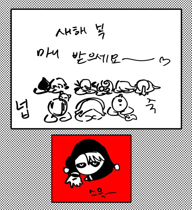 새해 복 많이 받으세요!! - 카라반 작가 일동 - 오사함 : 고구려어로 '토끼'를 뜻한다. 카라반 글작가님의 필명이기도 합니다. 그림작가 글작가 감수자 세 명 모두 토끼 띠. 올해는 '카라반'의 해~~!! #새해복많이받으세요 #카라반 #이만배