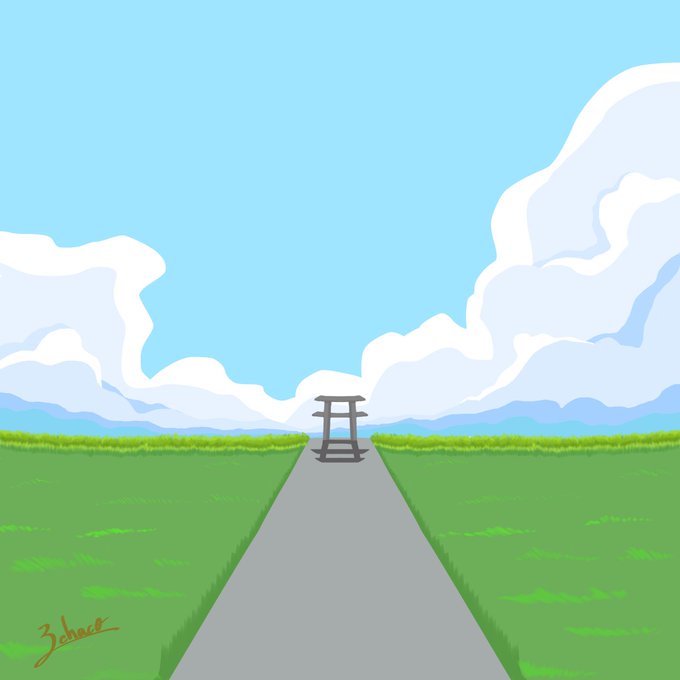 だいぶ久しぶりの風景の絵🌥 早く夏にならないかな〜。暑いけど、青い空に入道雲、植物は青々としてて色とりどりの花も咲いてて、生き生きとしてて良いよね〜🌱 #お絵描き #イラスト #お絵描き好きな人と繋がりたい #그림 #일러스트 #아트워크 #illustration #drawing #artwork #digitalart