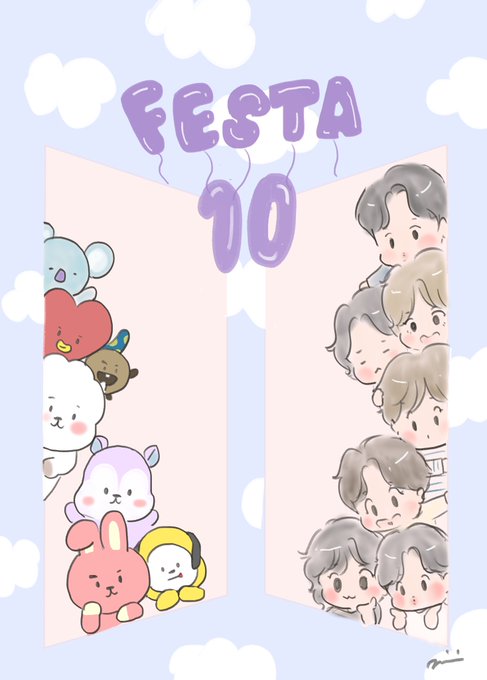 バンタン10周年おめでとう🎁🎂🎉 今日は1日沢山お祝いします💜💜💜バンタンへ愛と感謝をこめて✨💕✨💕 #BTS10thAnniversary #BTS #BTSARMY #BTSFesta2023 #btsfanart #방탄소년단 #아포방포 @bts_bighit @BTS_twt