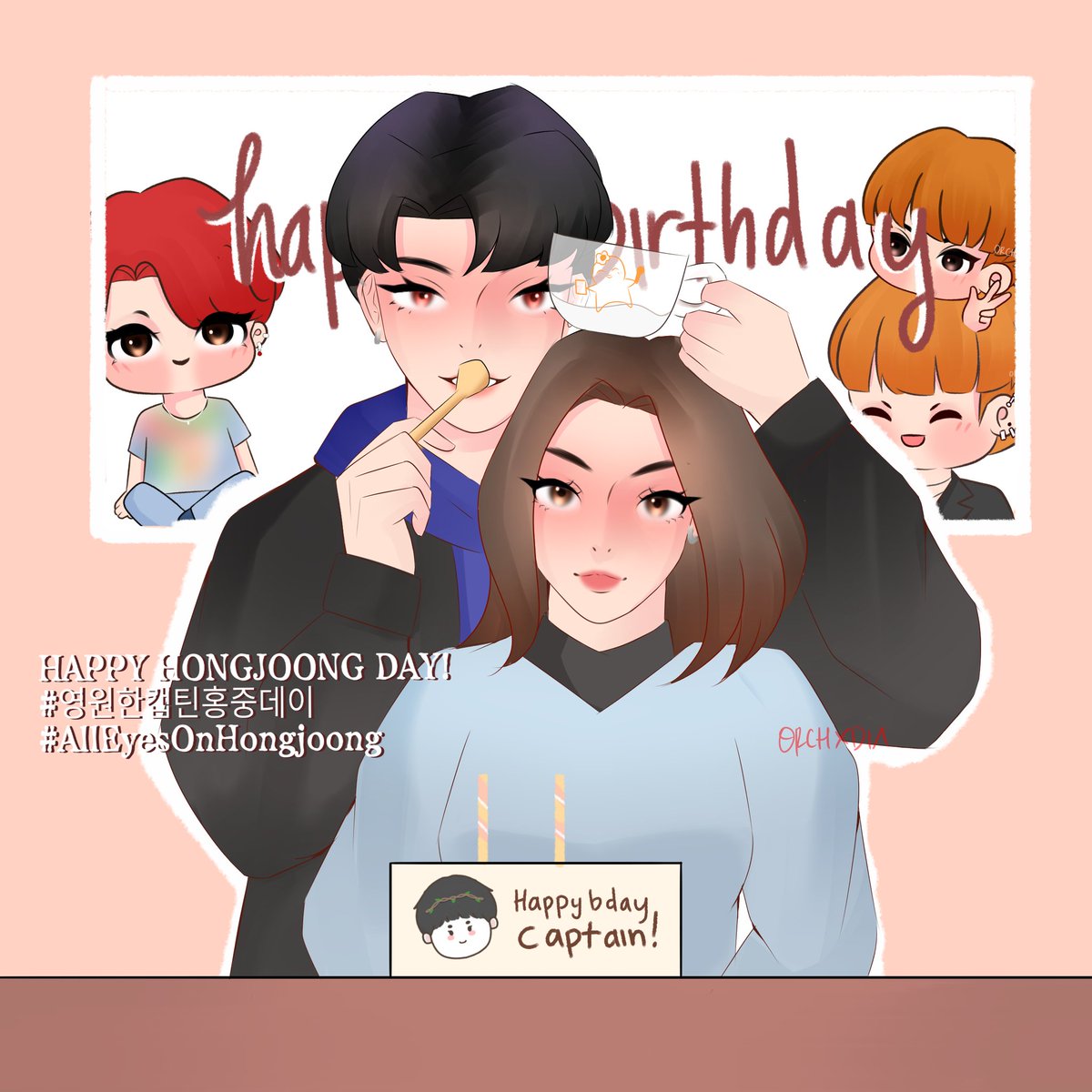 *pops out of the cake* HAPPY BEST LEADER DAYYY 🤝👏 #영원한_캡틴_홍중데이 #AllEyesOnHongjoong #HONGJOONG #ATEEZfanart