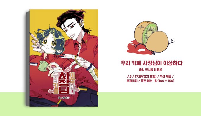 💛 우리 카페 사장님이 이상하다 💛 졸업 전시용 단행본 판매! 📢 소량 준비 📢 특전 엽서 1장 📢 한정판 (졸업 전시용 단행본으로 완판 시 재제작 예정 없음) 2023-01-01 21:00 <윗치폼> witchform.com/deposit_form.p… #우사이