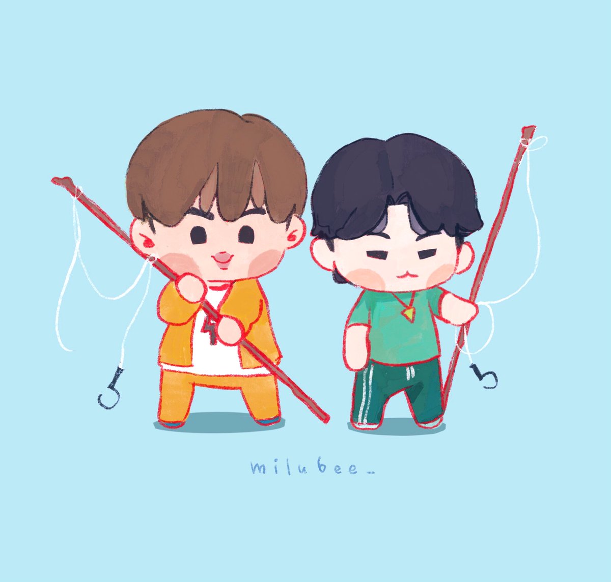 今私のソムのバンタンが、お揃いジャージで林間学校みたいで楽しそうなので描いてみました。 #인더섬 #IntheSEOM #BTSIsland #インザソム #BTS #btsfanart