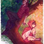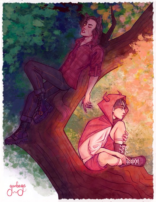 red riding hood gaon and big (freakin’) bad wolf jooyeon (grandma gunil not pictured) { #JOOYEON | #GAON | #XdinaryHeroes | #XHfanart | #XdinaryHeroesFanart | #엑스디너리히어로즈 | #가온 | #주연 }