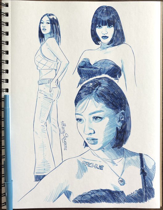 Jihyo sketches in blue pen from Between 1&2 era 🥰 #JIHYO #지효 #트와이스 #TWICE #BETWEENONCEandTWICE #TalkThatTalk #TwiceFanart @JYPETWICE