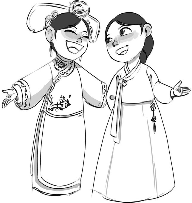 같은시대. 청나라(중국)소녀와 조선(한국)소녀가 만나 얘기를 나누고있다 1630년대~1800년대 말 청나라. 1392년~1896년 조선(96년 이후는 대한제국) 초창기 치파오는 저런 형태였습니다. #cheongsam #hanbok #Qingdynasty #치파오 #한복 #일러스트