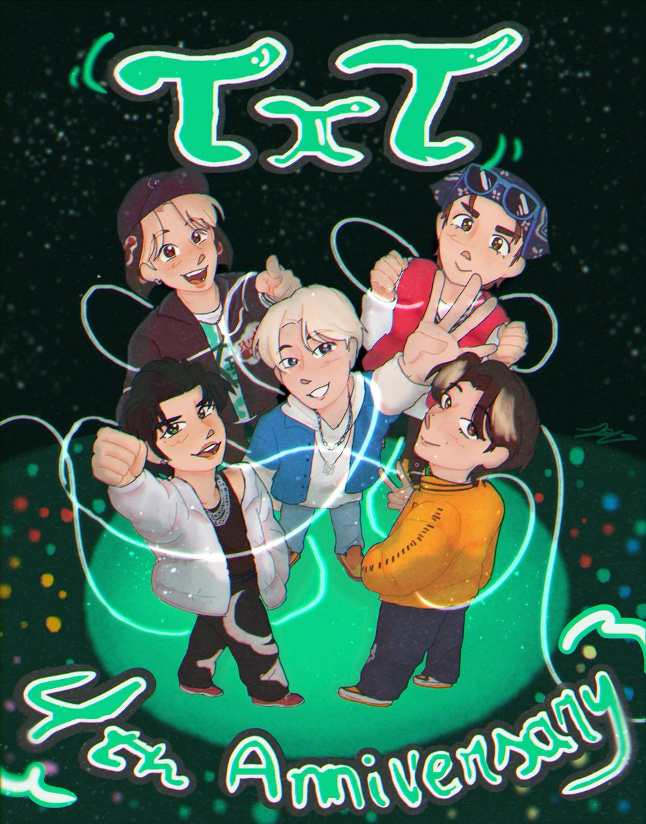 better late than never >< happy 4 years txt 💕🎉 #TXT_4th_Anniversary #ToFOUReverlandWithTXT #투바투와함께한4년내일도함께할우리 #TXTfanart