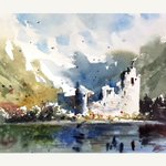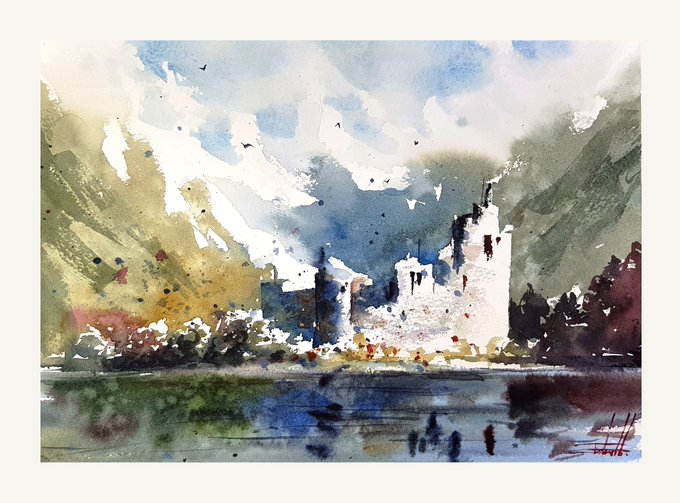 In my online art class, I painted a beautiful landscape in Scotland with direct watercolor(no-sketch watercolor) ⠀ #JohnsOnlineArtClass #펜드로잉수업 #수채화수업 #여행드로잉수업 #penandwashclass #watercolorclass #directwatercolor #Scotland #traveldrawing #travelbypainting