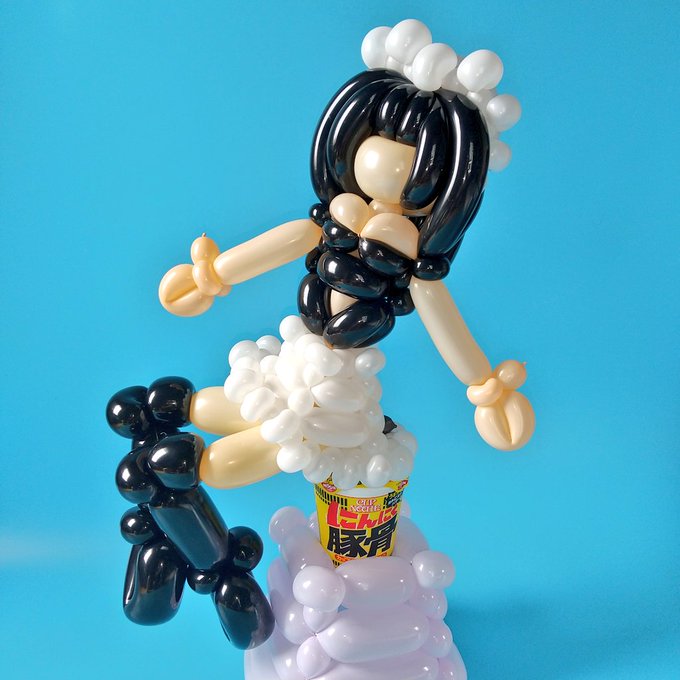 【カップヌードルが得意料理のマイメイドロイド】 あー、これは「ぼっしゅう」になってしまうやつだな。😅 #でんぱイラ #日清でんぱオンライン #バルーンアート #BalloonArt #造型氣球 #풍선 #풍선아트 #公式ふうせん部 ※撮影終わったんで、カップヌードルは美味しくいただきます。🍜