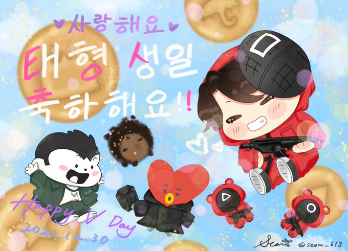 テテちゃんおめでとうー!!!! 🥳🎂🥳 #HappyTaehyungDay #HAPPYVDAY #아미바라기겨울곰_태형아생일축하해 #하늘에서내려준_12월의선물_태형 #btsfanart