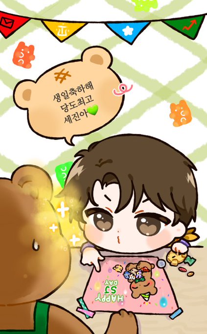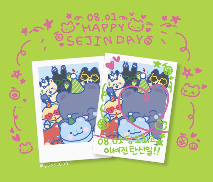 #HAPPY_SEJIN_DAY #세진세진_오늘_생일이잖아 #8월의시작은_당도최고_하리보 #한계를넘어_세계가된_세진아_생일축하해 새로 그린 그림은 하나두 없지만..🥹 우리 당도최고 말랑하리보 곰돌이 생일 쭈카해!!💚💚