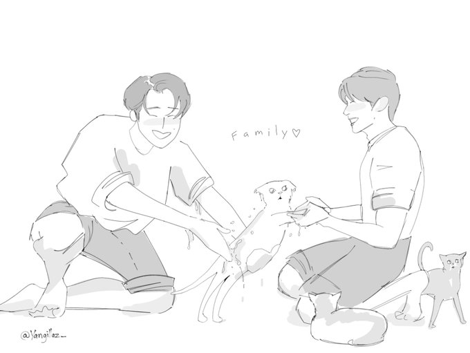 我慢できないほどかわいい猫っぽいストレッチ😽😽 #StrayKids #Straykidsfanart #한밍 #한지성 #리노 #LeeKnow #HanJisung #スケッチ #イラスト #スキズ