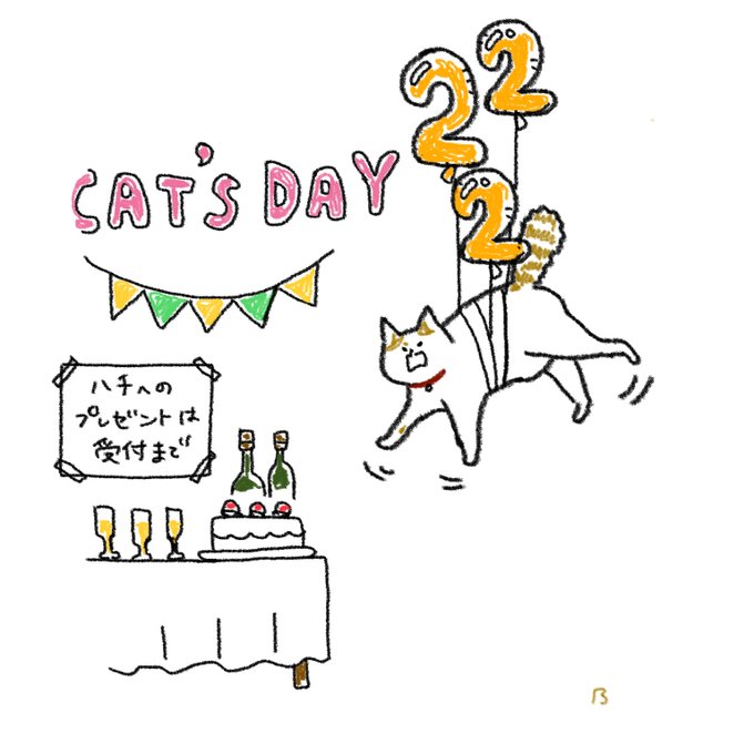 「風船でもっと目立てると思った」byハチさん #かたまろまゆのハチ #猫好きさんと繋がりたい #猫 #猫イラスト #ゆるいイラスト #イラスト #イラストレーター #猫の日 #猫の日2023 #2月22日 #にゃんにゃんにゃんの日