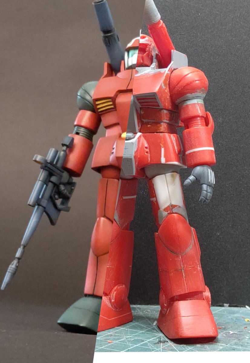 #4つのキットで自己紹介 旧キットばっかり作ってます。 「今回はお手軽にいこう」とか思いながら気がつくと切り刻んでる癖がありますw 設定画や作画で描かれて無いものは足さないのがこだわりです。 貧乏性なのでパーツ流用しませんw #ガンプラ #旧キット