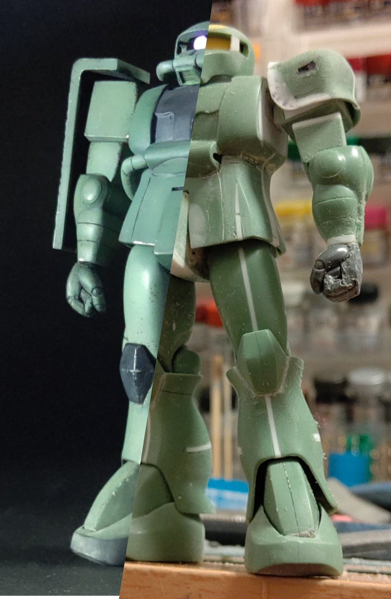 #4つのキットで自己紹介 らいだ〜Joeさんの作品に感銘を受けてからウェザリングに沼ってます✨😌✨ まだまだ足元にも及ばない作品ばかりです😅 #ガンプラ好きと繋がりたい #ガンプラの画像を貼るとRTされると聞いて