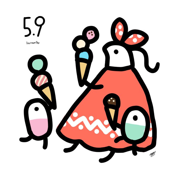 #今日は何の日 ————— #5月9日 ————— #アイスクリームの日 #アイスの日 ハッピーアイスクリーム パーティ!🍨💓 ————— #おっぽーイラスト #おっぽーの今日は何の日 #おっぽさんとこっぽちゃん #1日1絵