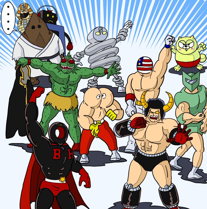 #バッファローマン 🐮率いる #7人の悪魔超人 を息子(7歳)のタッチで今描きました! 10巻の表紙風にしました。 #ステカセキング 📻 #ブラックホール 🕳 #スプリングマン #アトランティス 🐟 #ミスター・カーメン #ザ・魔雲天 🏔 #キン肉マン #キン肉マンアニメ化 #祝キン肉マン400回 twitter.com/u_muse/status/…