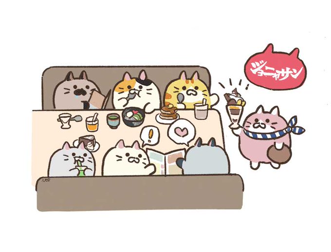 「ジョニャサン」ではきっとねこが働いてるはずだし ねこがランチの後おやつを食べにおじゃましてもいいよ…ね?(=・ω・=)♡ #ジョナサン #ごろねこサミット #ごろねこサミット絵日記 #8月8日 #世界猫の日 twitter.com/jona_official_…