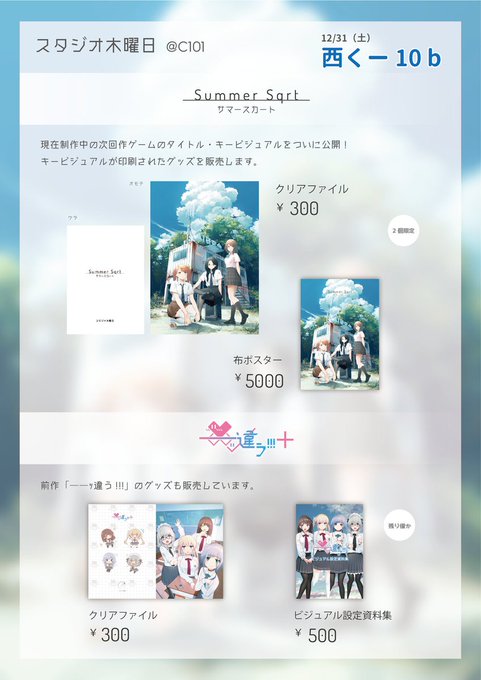 #C101 お品書きです! 先程公開した『SummerSqrt』のキービジュアルを使用したグッズを販売予定です! 12月31日(土)【西く10b】でお待ちしています!! #SummerSqrt #ッ違うPlus