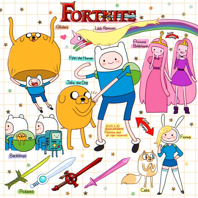 フォートナイトとアドベンチャータイムでコラボしてほしいので描いてみました! グライダーとかバックアクセサリーとかツルハシ絶対可愛い🥰 お願いしますっ!!!!! My creator code【AASAA777】Thx💖 #Fortnite #フォートナイト #AdventureTime #アドベンチャータイム