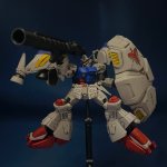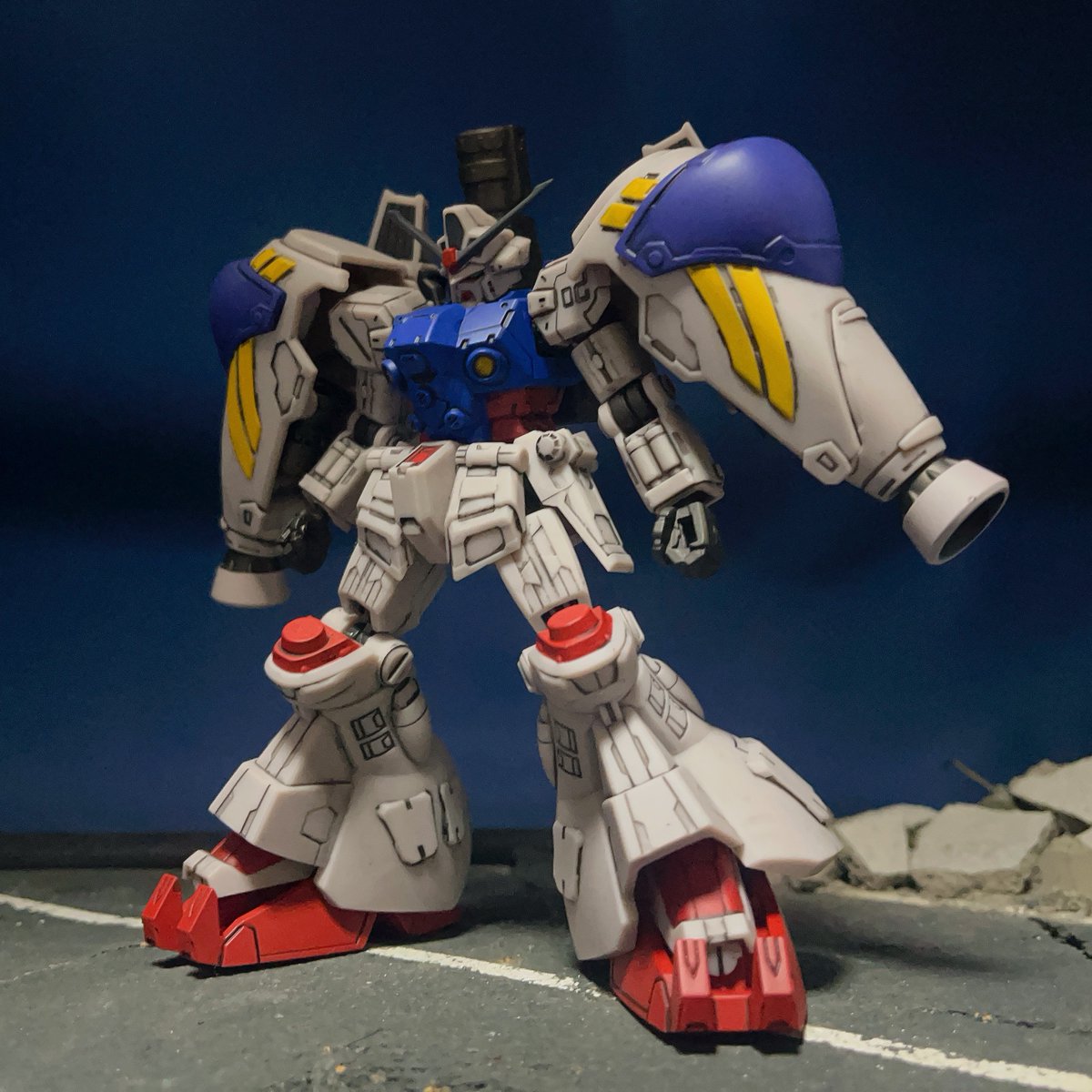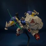 あらためまして「ガンプラくんDX」クローバー製デラックス仕様の完成画像になります!ダブルシールドとビームサーベルのちょい持ち加減がこだわりポイント!4つ作った中では1番強そう。流石ダイカストw #YSモナカ・EGコンペ2 #ガンプラくん #ガンプラ