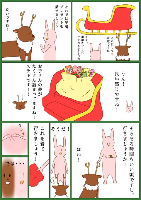【うさぎさんたちのクリスマス🎄】 〜いよいよ!本番!!の巻〜 #漫画が読めるハッシュタグ #うさぎさん #クリスマス #イラスト好きさんと繋がりたい #MerryChristmas #クリスマス #クリスマスイブ #イラスト #サンタ #トナカイ #雪