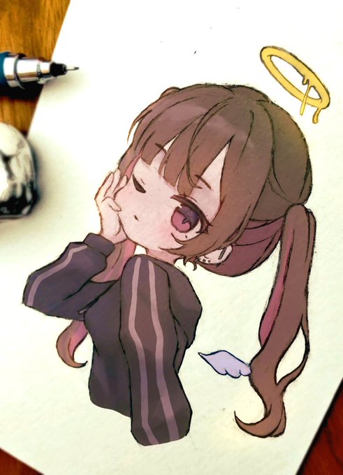 ジュンたん描きました #ジュンたん描いた #illustration #イラスト #女の子 #茶髪ツインテール #はむねずこ 様 #ピンクインナー #絵描きさんと繋がりたい #絵描きさんと仲良くなりたい