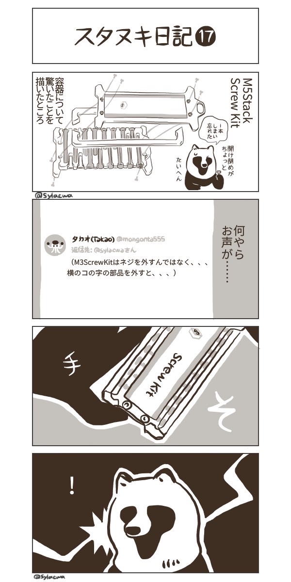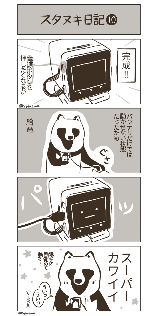 #スタックチャン に癒されるタヌキの日記 第14話ぽん。 先日の #MFTokyo2022 のこと。(おそらくあすに)続きますぽん。 #スタヌキ日記 #4コマ漫画 #漫画が読めるハッシュタグ