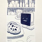 day30 レーズンバター #スタックチャン とバーで一杯。 熱い視線が注がれます👀 #inktober2022 #inktober #ペン画 #猫 #イラスト #illustration #スタヌキ日記