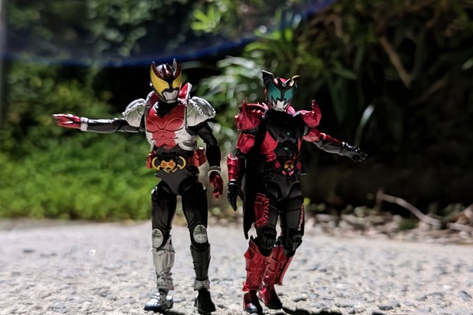#おもちゃ撮影会 7/8『睨む』 キングの睨み🦇 #仮面ライダーキバ #ダークキバ #仮面ライダー #shodo #オモ写 #夜のフィギュア撮影会 #楽しく玩具撮影会 #toyphotography