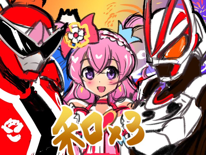 あと1ヶ月でこの和トリオが見れなくなると思うと辛い😭 ニチアサ主役が和風で揃うって中々無い現象だと思うので記念に一枚‼️ #ドンブラザーズ #デリシャスパーティプリキュア #仮面ライダーギーツ