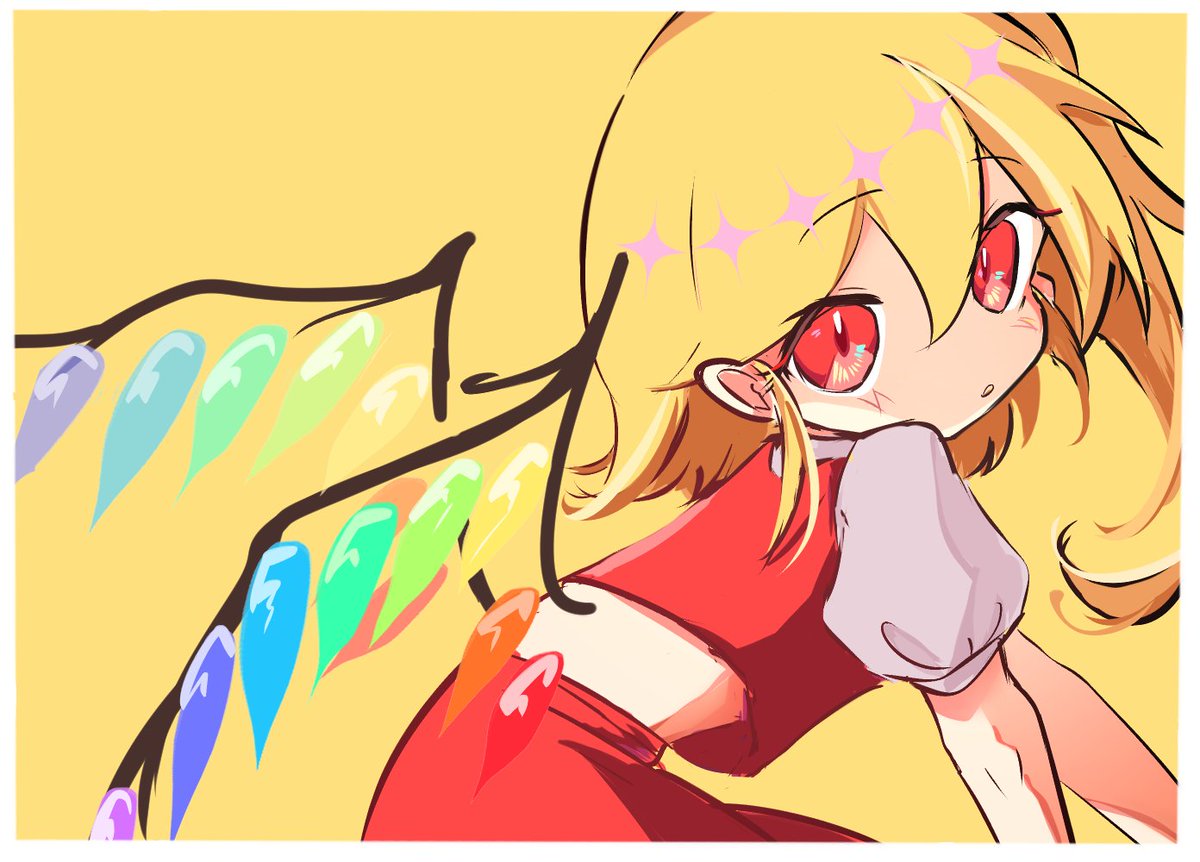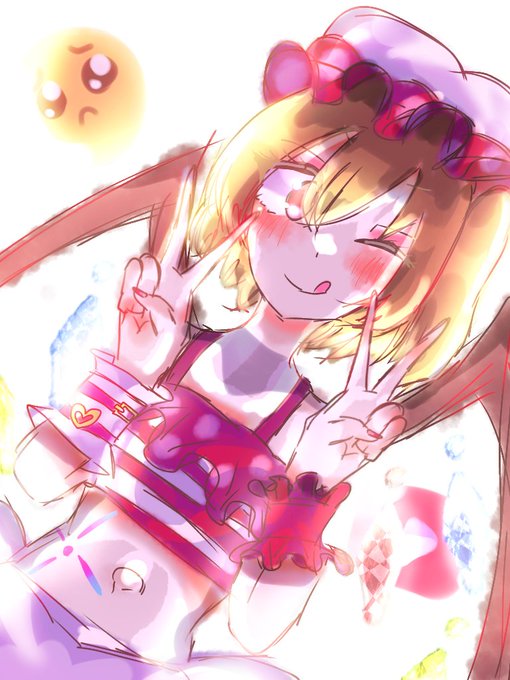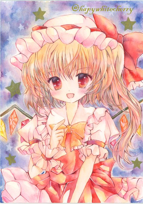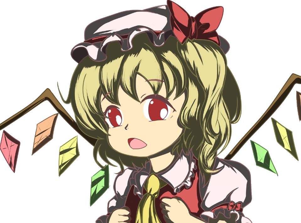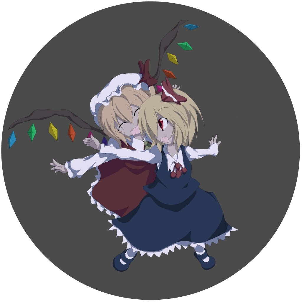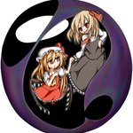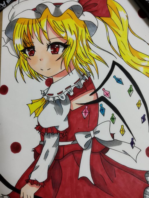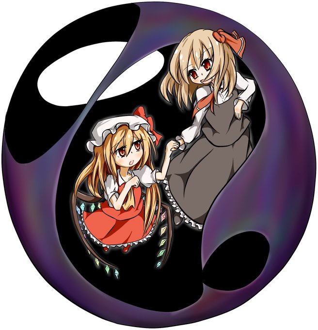 折角なんでルミフラで新旧(あとツール)比較~ ⬅️液タブとSAI ➡️板タブとMSペイント 最初ソフトの都合でアニメ塗りしてた流れが、ツールが変わってもずっと続いてる(´・ω・) #東方イラスト #ルーミア #フランドールスカーレット