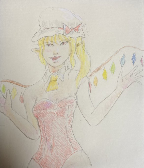 では仕事行ってきます(≧∇≦)b #東方Project #東方絵描きさんと繋がりたい #chen #フランドールスカーレット #フラン 朝おえかき・・影途中 今回は塗り込みしない予定(*´ω`*)